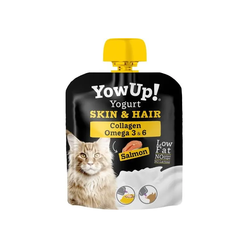 Découvrez le nouveau Yaourt Peau et Poil au saumon pour chat Yow Up !
