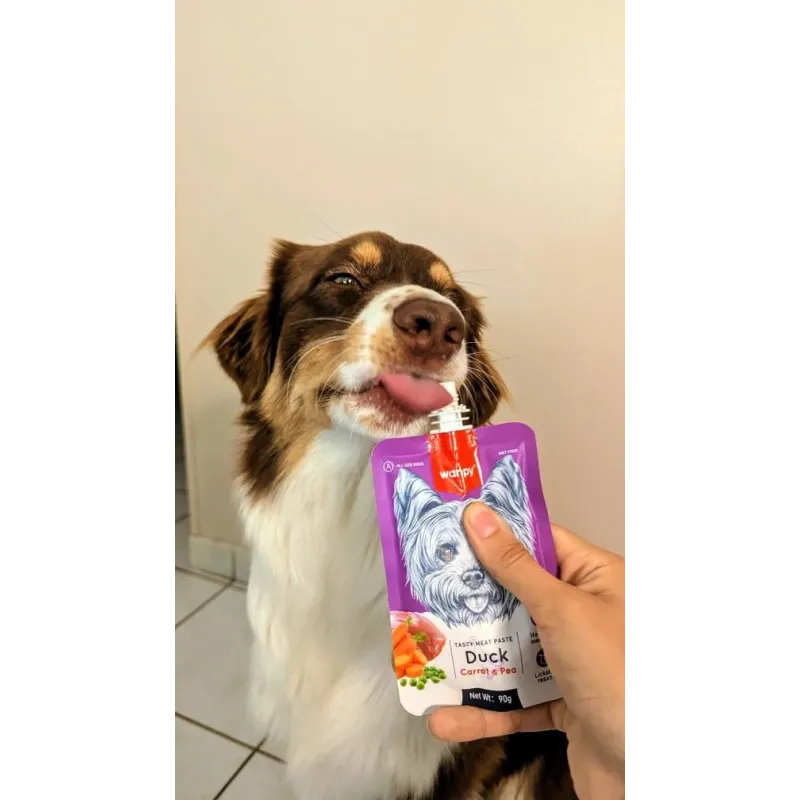 Découvrez la gourde crémeuse Wanpy Canard & Carotte, une friandise liquide formulée pour allier plaisir, nutrition et bien-être digestif pour votre chien.